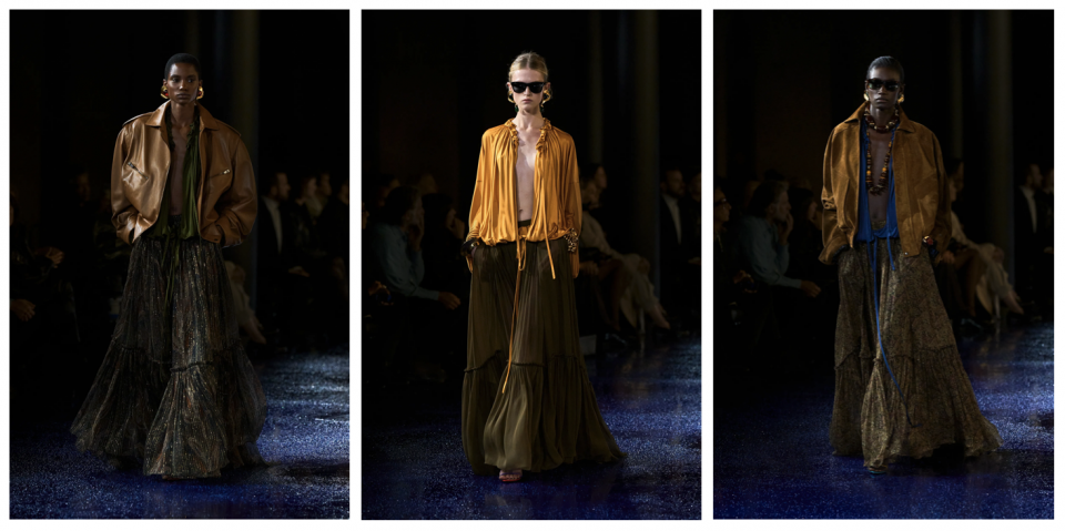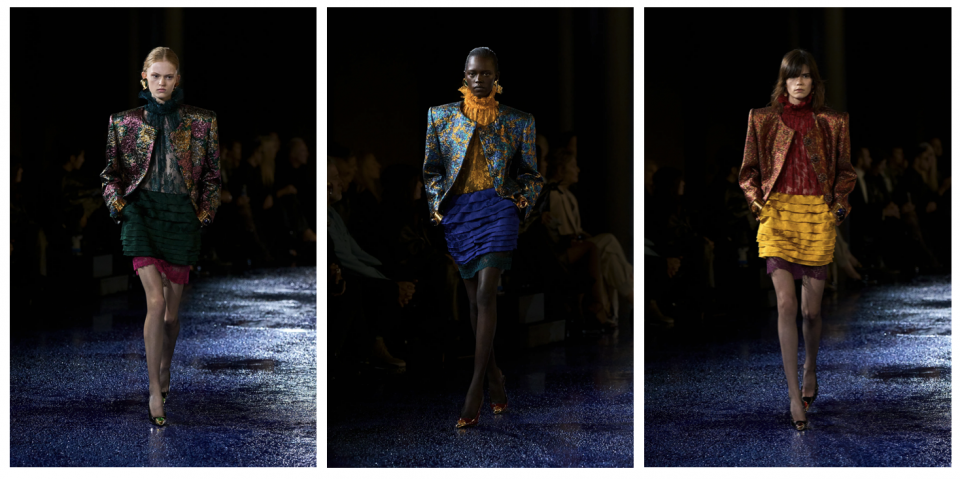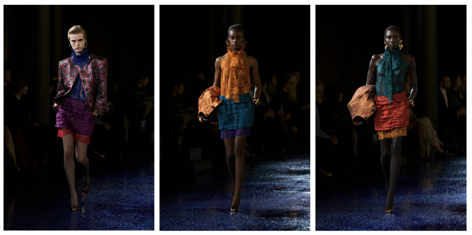 Anthony Vaccarello fez uma coleção não só inspirada no design de Yves Saint Laurent, como também na própria imagem do designer. Uma coleção “genderless”, andrógina, como tem prometido a maioria dos designers. Modelos desfilaram ternos, jaquetas de couro e muitos acessórios, carro chefe da marca. O estilo marroquino também foi usado, aquele que povoou a era do perfume Opium.